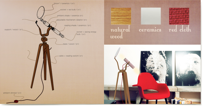 Mother and child lamps combine in one object a floor lamp and a reading lamp. The ones existing in the market, with such strong functionality, do not have a very high aesthetic value, making them look like two different lamps.