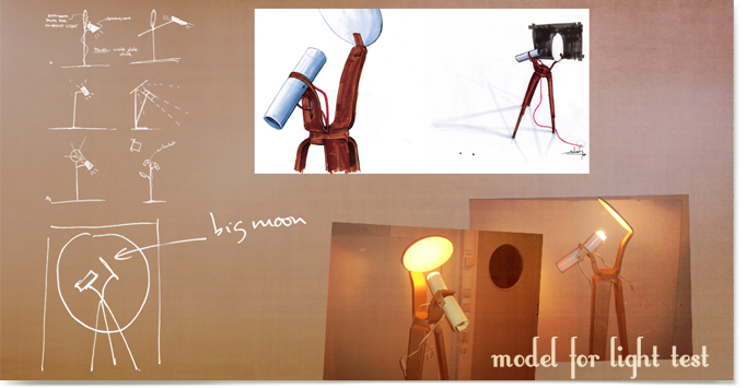 Ideation process included the making of a 1:1 scale model, using plastic tubes, cardboard, paper and wood.