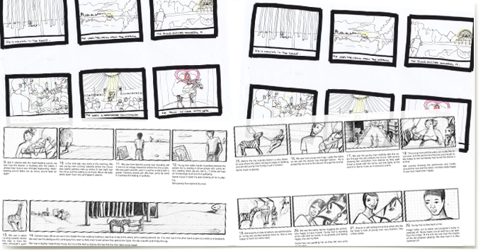 The story changed and evolved during the weeks the project lasted, so several stroyboards were made throughout the process.